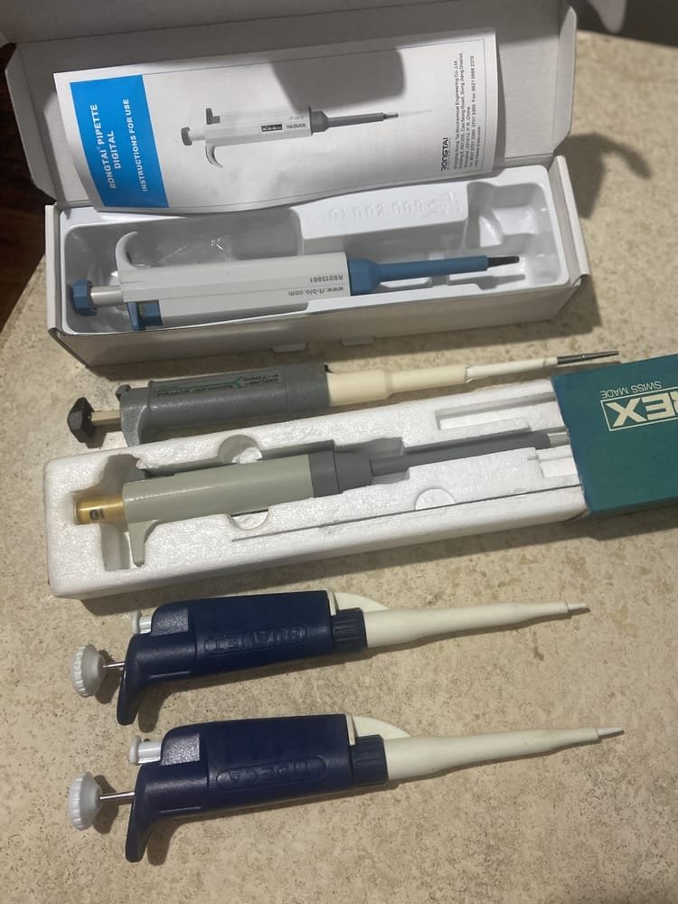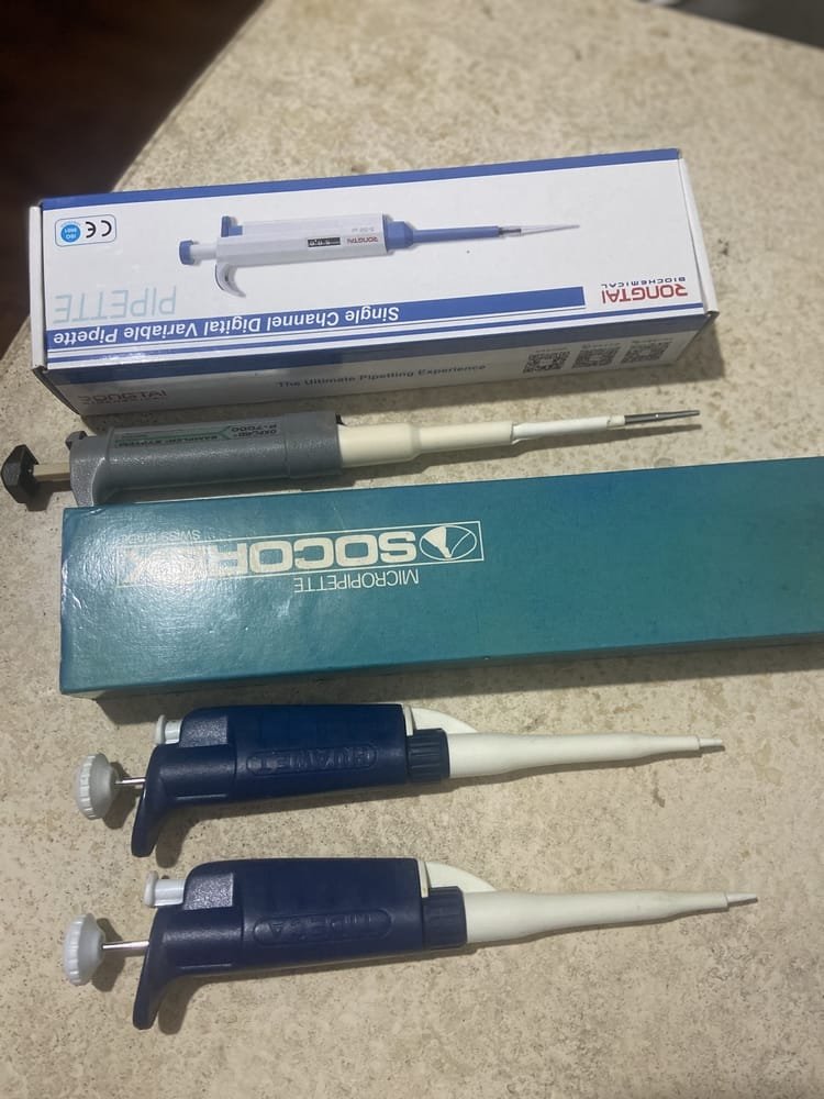 Se venden pipetas automáticas en muy buen estado de 50ul, 20ul, 10ul (2) y 10ul.